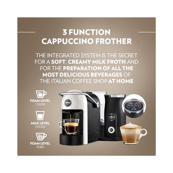 This Lavazza Jolie & Milk is an elegant and quiet appliance that allows you to prepare original recipes using coffee and fresh milk. Thanks to the integrated milk frother, you can unlock your creativity and prepare your coffee and milk-based beverages for yourself, family, and friends in just a few simple steps.