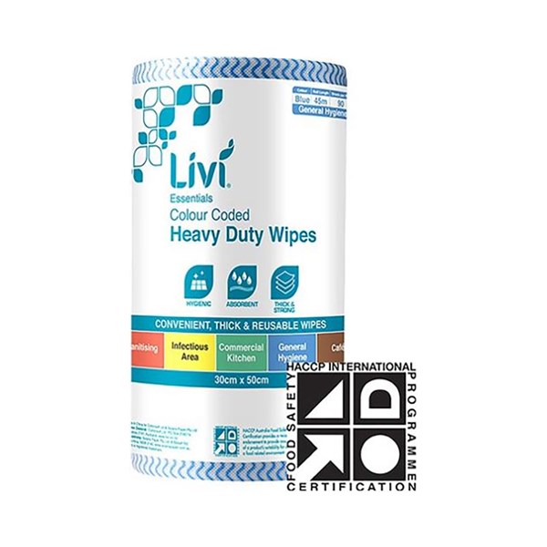 Avoid cross contamination with colour coded absorbent wipes for reuse in demanding applications or tackle the tougher tasks with the Livi heavy duty industrial spec turbo wipers