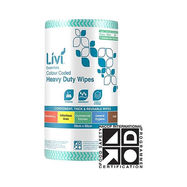 Avoid cross contamination with colour coded absorbent wipes for reuse in demanding applications or tackle the tougher tasks with the Livi heavy duty industrial spec turbo wipers