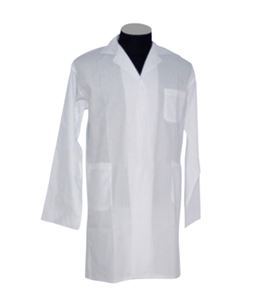 - A light coat worn to protect clothing from substances used while working in a laboratory.