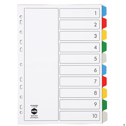 Marbig Dividers Pp A4 10 Tab Multi Colour