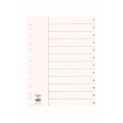 Marbig Dividers Pp A4 1-12 Tab Grey