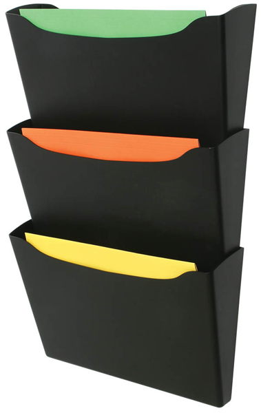 - Keep files readily accessible without taking up valuable desk space Three compartment wall pocket to aid in your filing and storage needs Can be installed on a work station or wall