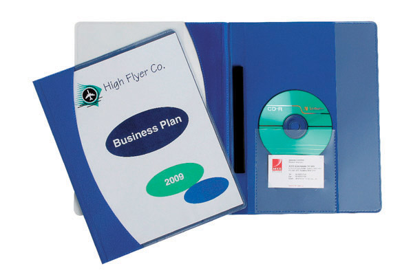 - Inside back cover with vertical pocket, CD Holder and business card holder
