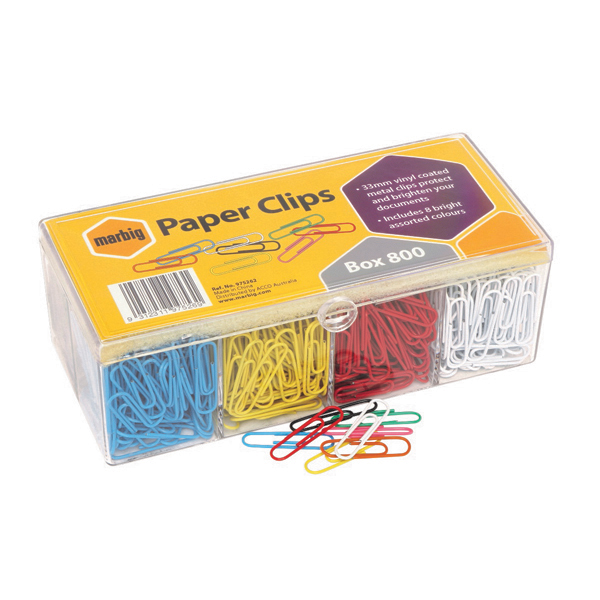 Marbig Paper Clips Vinyl Coated Assorted Colours Pack 800