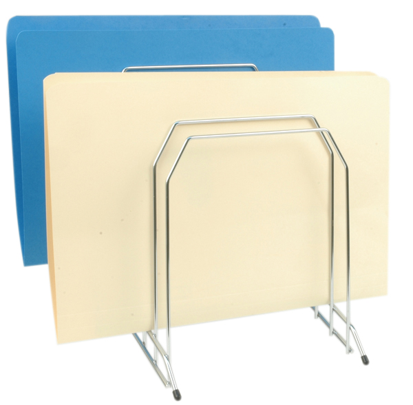 - Chrome plated with protective rubber feet Graduated slots for holding mail, folders, loose papers, etc