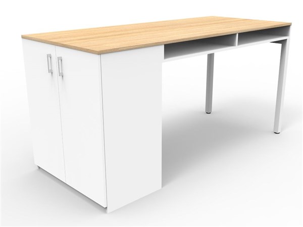 MeetUp Standing Table H1020x D900x W2100mm Space Euro Oak/ White **ONLY AVAILABLE IN WA**
