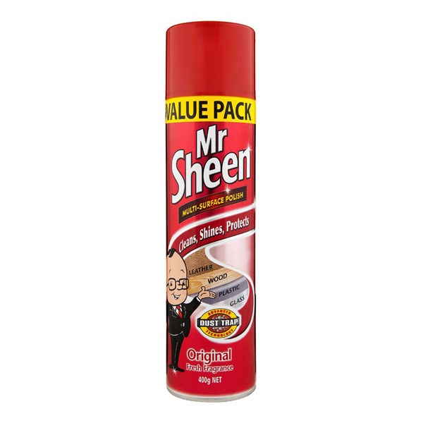 Mr Sheen surface polish can be used to clean plastic, metal and wooden furniture and household items