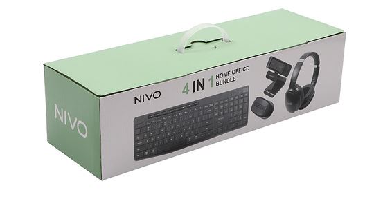 - The Nivo 4-in-1 Home Office Value Pack is designed to enhance productivity and comfort in your home or office setup. It includes a high-quality wireless keyboard, mouse, Bluetooth headphones, and a digital webcam with a privacy shutter, providing essential tools for an efficient workspace.