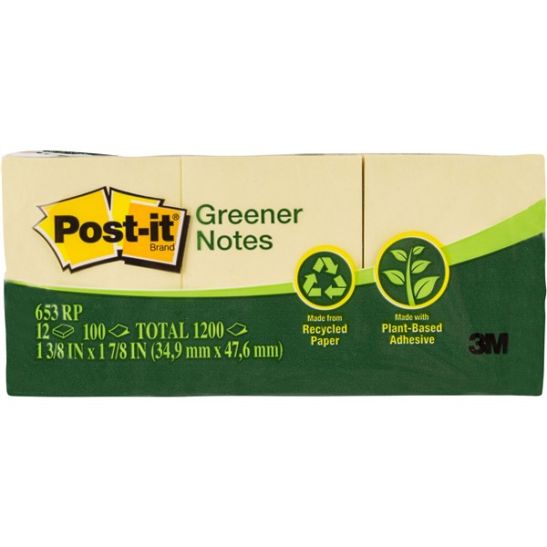 Post-It Notes 653-1RP Recycled 36x48mm Yellow PK12