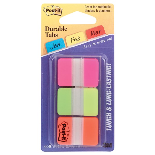 Post-It Tabs 686-Pgo Durable Index 25X38mm Assorted Pack 3