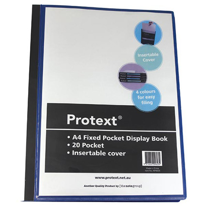 - Protext fixed pocket display book comes with 40 pockets and an insertable cover and spine