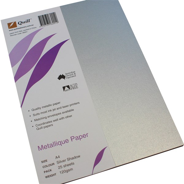 Quill Metallique Paper A4 120Gsm Silver Shadow Pack 25