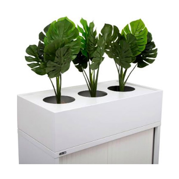 The Go Planter Box sits perfectly on top of a GO Tambour Door Cupboard or GO Lateral Filing Cabinet to display greenery.
