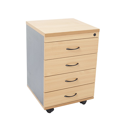 Rapid Mobile Pedestal 4 Drawer Lockable Beech/Ironstone
