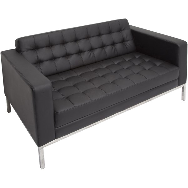 DescriptionThe Rapid two seater Venus lounge has a stainless steel frame and a black PU upholstery and button stitching details. The comfortable moulded foam seat will support 130kg of weight. It is SGS tested. Perfect for waiting rooms, reception areas.