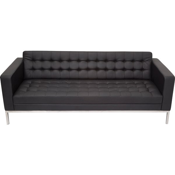 DescriptionThe Rapid three seater Venus lounge has a stainless steel frame and a black PU upholstery and button stitching details. The comfortable moulded foam seat will support 130kg of weight. It is SGS tested. Perfect for waiting rooms, reception areas.