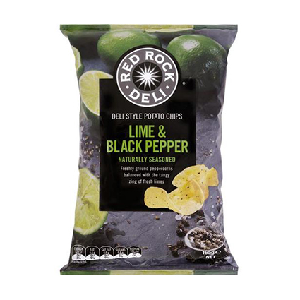 Red Rock Deli Lime And Pepper Potato Chips 165G Carton 12