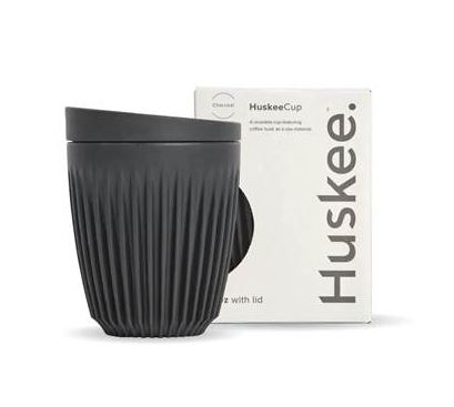 Reusable Huskee Cup And Lid 8oz Charcoal (Box12) HC08LC12-E