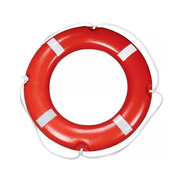- 750mm (30”) diameter plastic lifebuoy complete with retro-reflective tape and poly rope