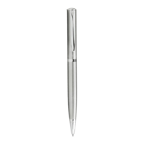 Exclusive design, light weight metal ballpoint in a matte brushed silver with chrome coloured details and a scriptura clip.