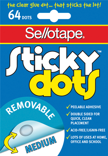 Sellotape Sticky Dots Adhesive 10mm Pack 64 Removable