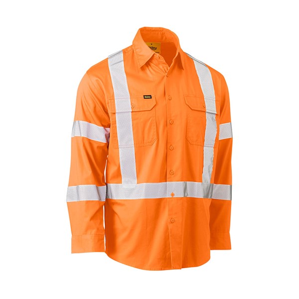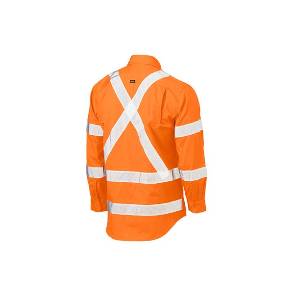 Shirt Hi-Vis LS Aus Rail X-back Taped 155gsm Bisley Orange