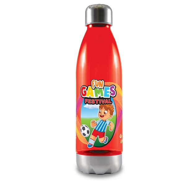Introducing the Soda Drink Bottle, a 700ml translucent bottle with a stainless-steel cap and base. Available in six vibrant colours, this bottle features a leak-free secure screw cap lid. Made from BPA-free material, it's shatter, odour, and stain-resistant, ensuring durability. Ideal for cold drinks only, this bottle is not suitable for carbonated liquids or freezing. For logo longevity, hand washing is recommended.