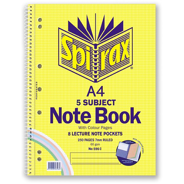 Spirax 596C Notebook 5 Subject Coloured A4 250 Pages