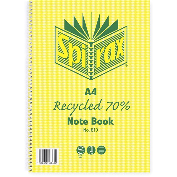 - The range of Spirax Recycled Notebooks are available in A4, A5, and A6 and include 70% recycled paper