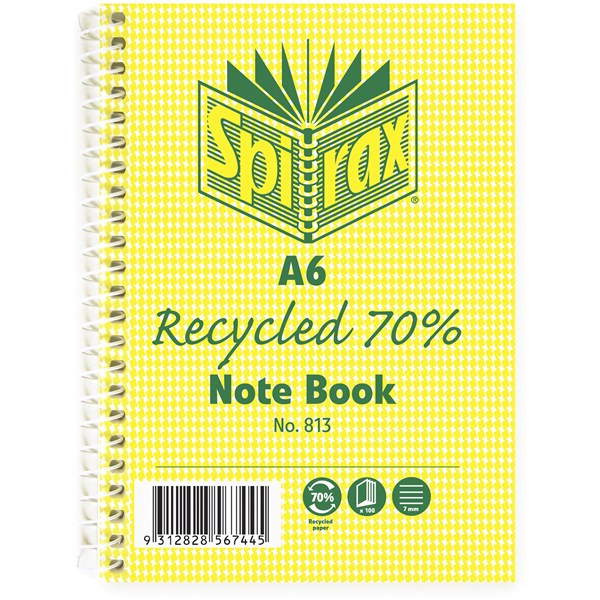 - The range of Spirax Recycled Notebooks are available in A4, A5, and A6 and include 70% recycled paper