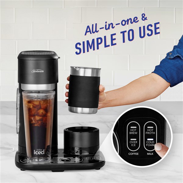 Experience the best of both worlds and brew café-style hot or iced coffee drinks at home with the Sunbeam Hot + Iced Coffee Machine with Integrated Frother.