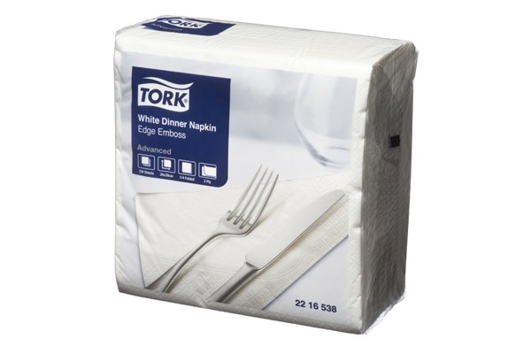 Tork Dinner Napkin Edge Emboss Quarterfold 2 Ply 39 X 39cm 150 White