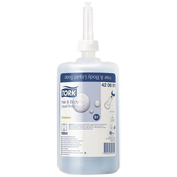 - This Tork S1 System Hair and Body Liquid Soap can be used to replenish the soap in your Tork S1 Dispenser. This is a combined soap and shampoo liquid that works into a rich lather that can be used on the whole body. The cartridge is sealed prior to use to prevent contamination, and is easy to load, saving time.