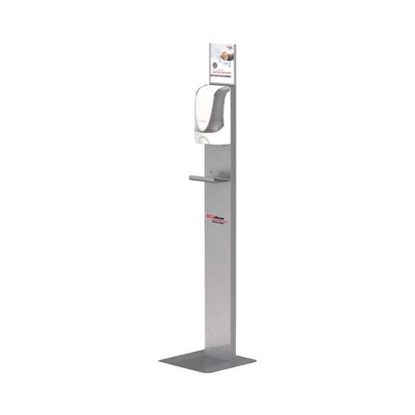 - This Stylish dispenser stand helps to promote hand sanitizing and is ideal for use in any work environment or public area where a higher level of hand hygiene is required.