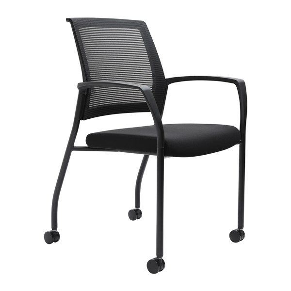 Urbin Stackable Chair 4 Leg Mesh Back Black Fabric Castors