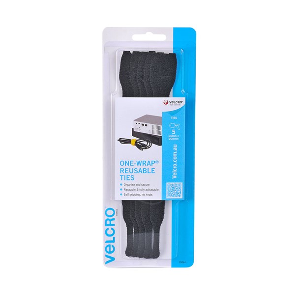 Velcro One-Wrap Pre Formed Reusable Ties Black Pack 5 Black