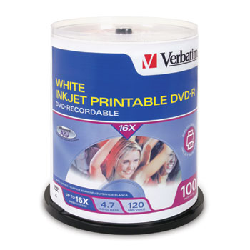 - Verbatim DVD-R InkJet, DVD-R, Printable, spindle, 100 pc(s), 4.7 GB