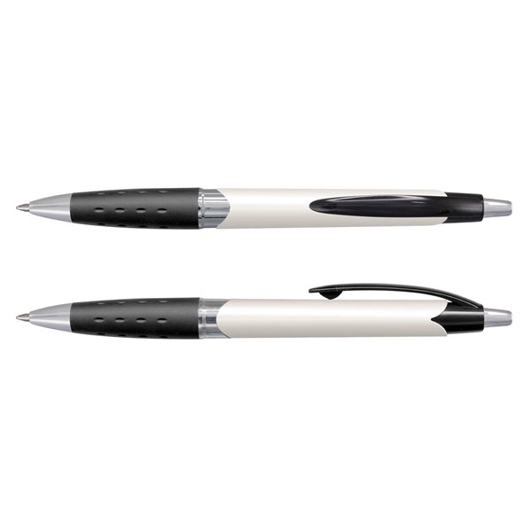 Retractable plastic ballpoint pen with a metallic barrel and a soft rubber grip. It has a blue refill with 1200 metres of writing ink and can be presented in an optional pen sleeve..
