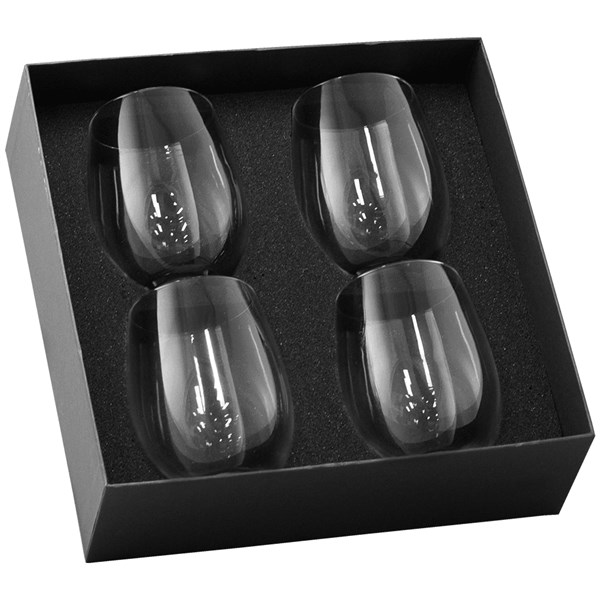 This set of four wine glasses comes beautifully boxed in a black two pieces gift box with foam insert. 450ml capacity.